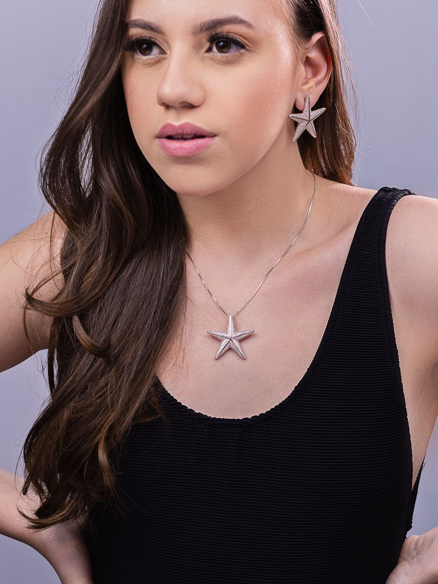 Starfish Pendant Necklace Clear CZ | 925 Silver