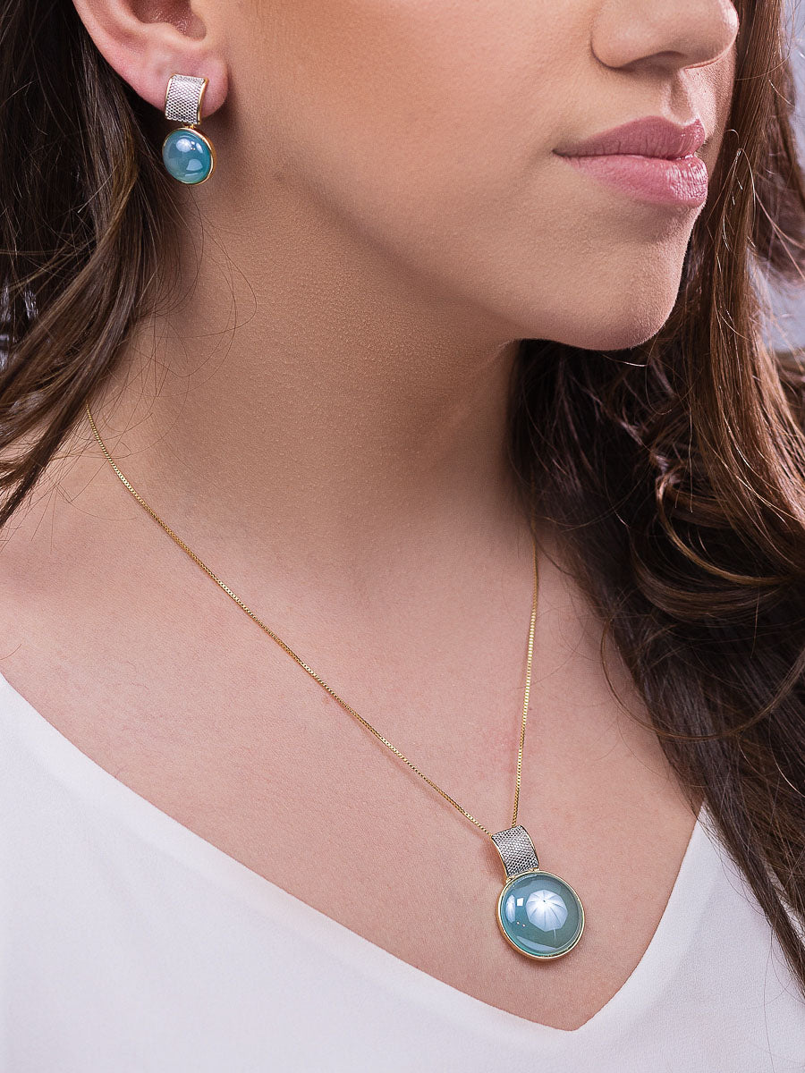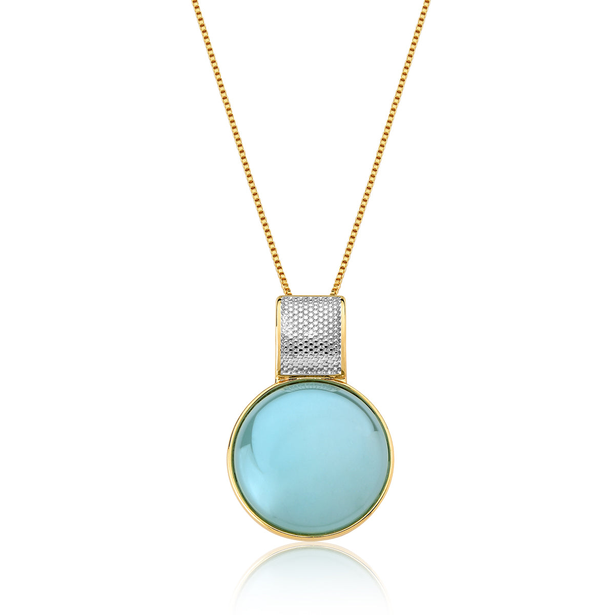 Pendant Necklace in Blue Sky Agate Natural Gemstone | Gold & Rhodium Plated