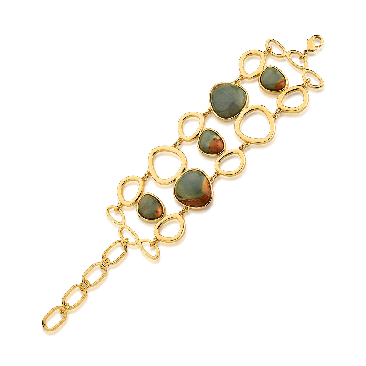 Link Bracelet in Polychrome Jasper Natural Gemstone | Gold Plated