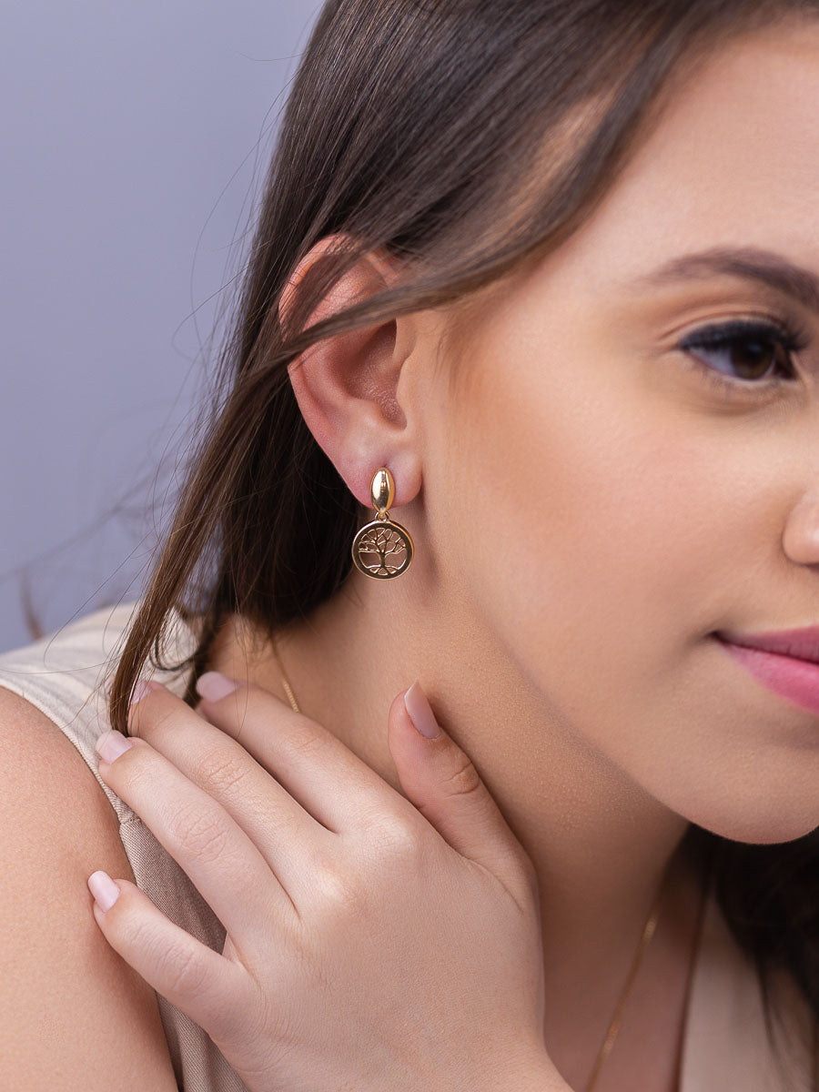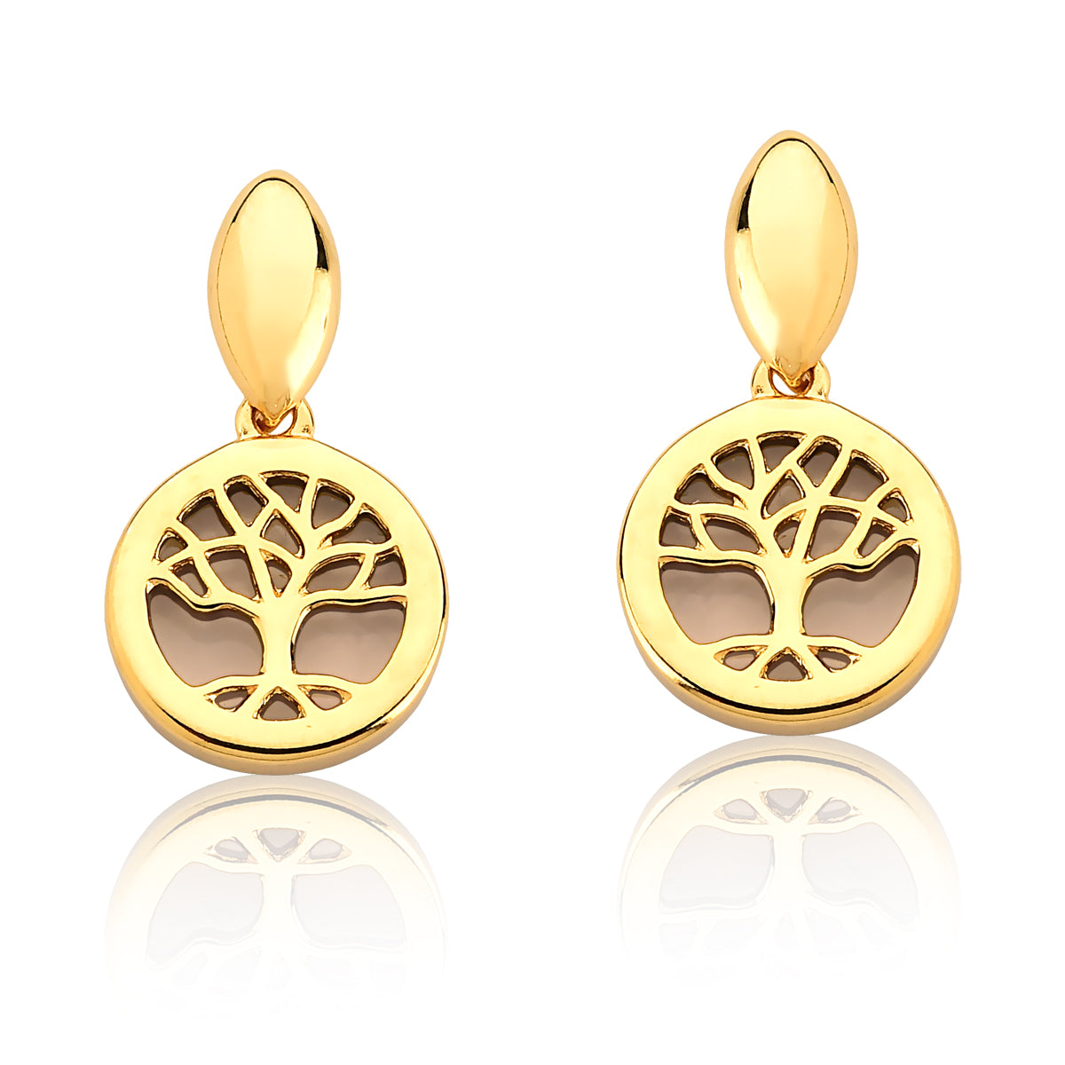 Tree of Life Drop Earrings in Smoke Obsidian Natural Gemstone | Gold Plated