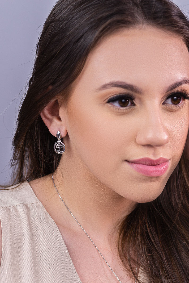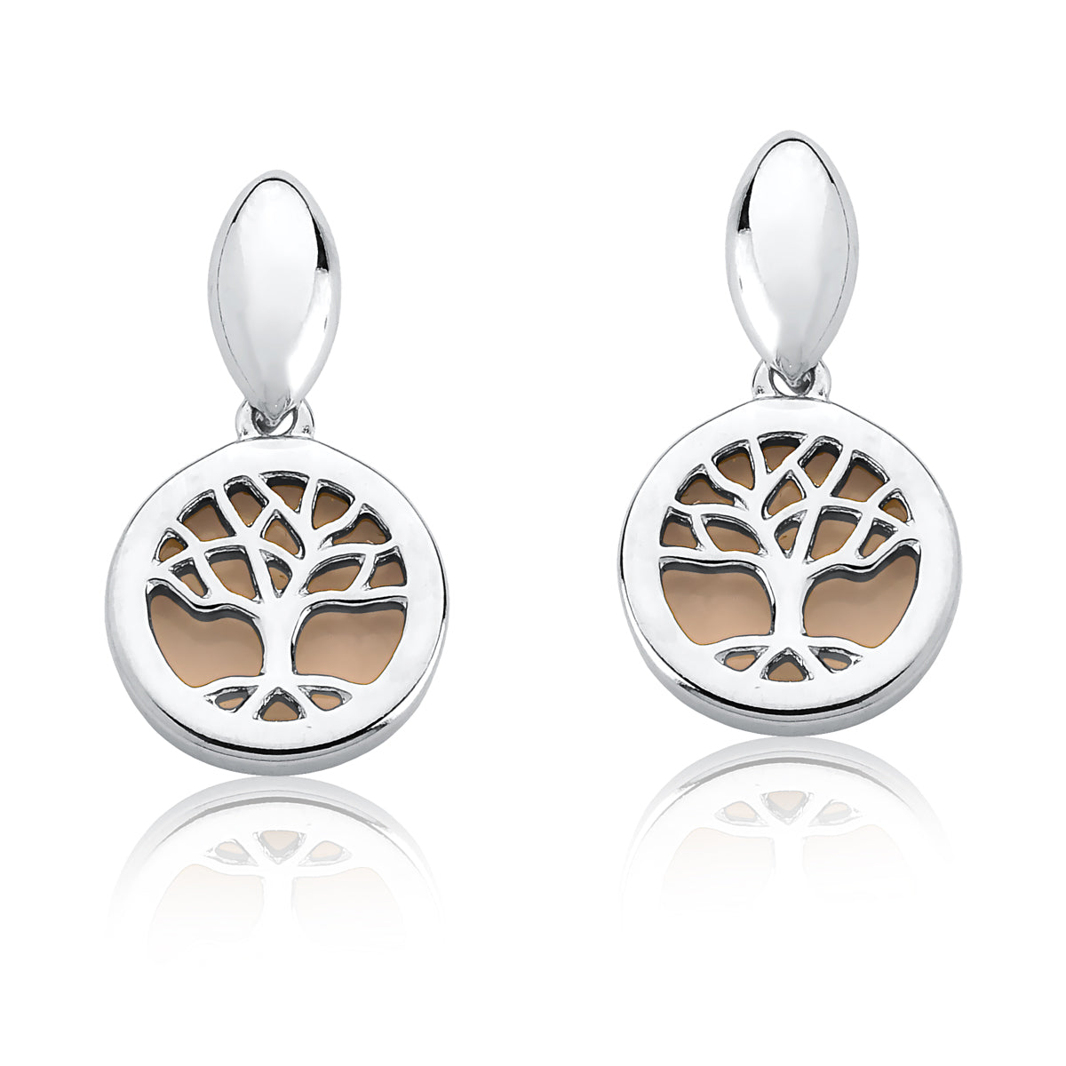 Tree of Life Drop Earrings in Smoke Obsidian Natural Gemstone | Rhodium Plated