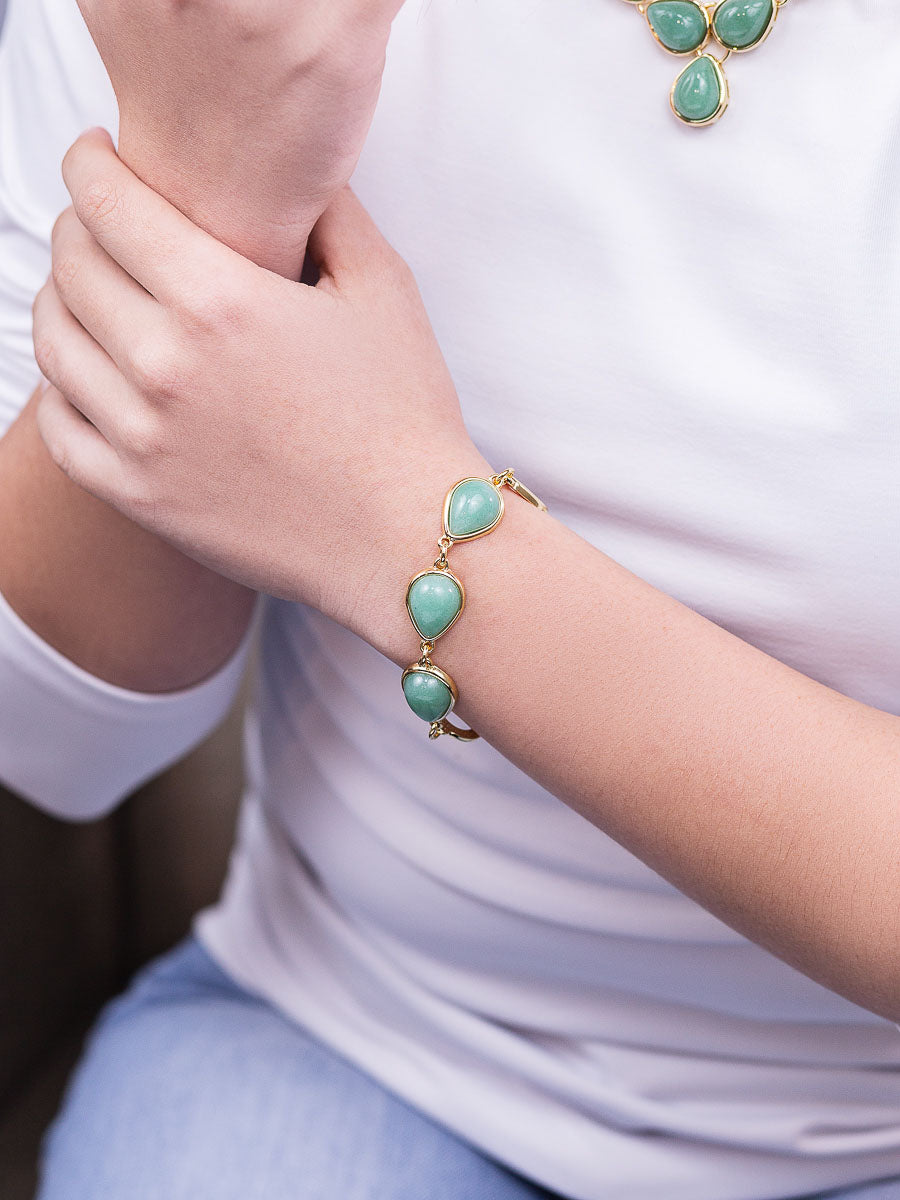 Link Bracelet in Green Quartz Natural Gemstone | Gold Plated