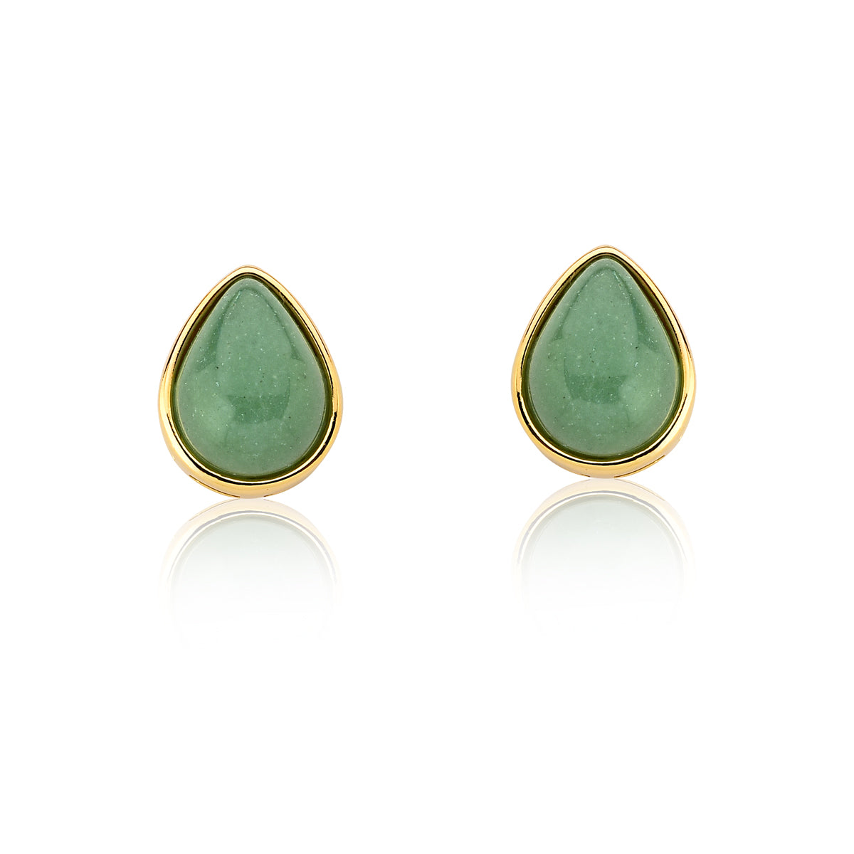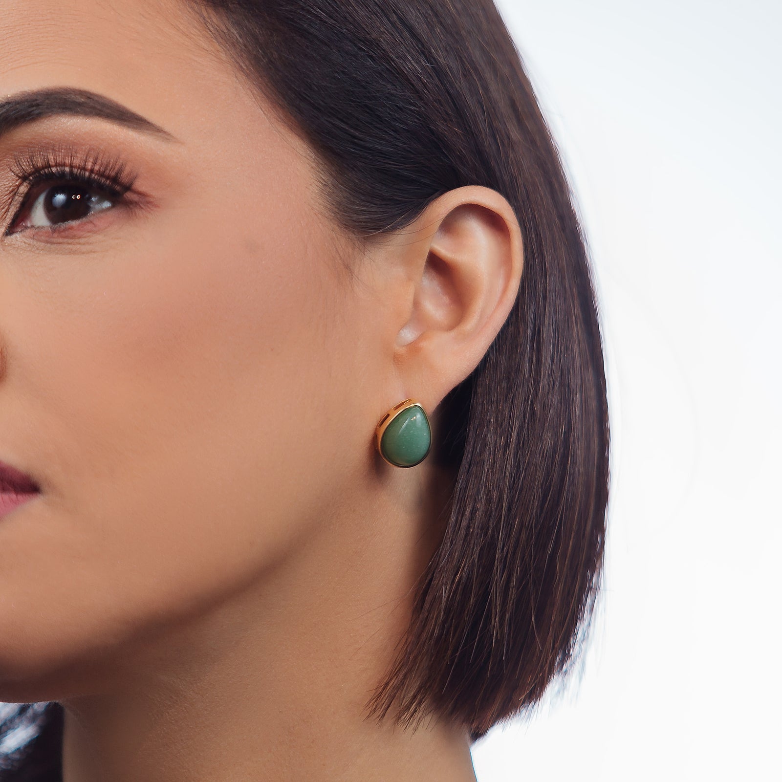 Stud Earrings in Green Quartz Natural Gemstone | Gold Plated