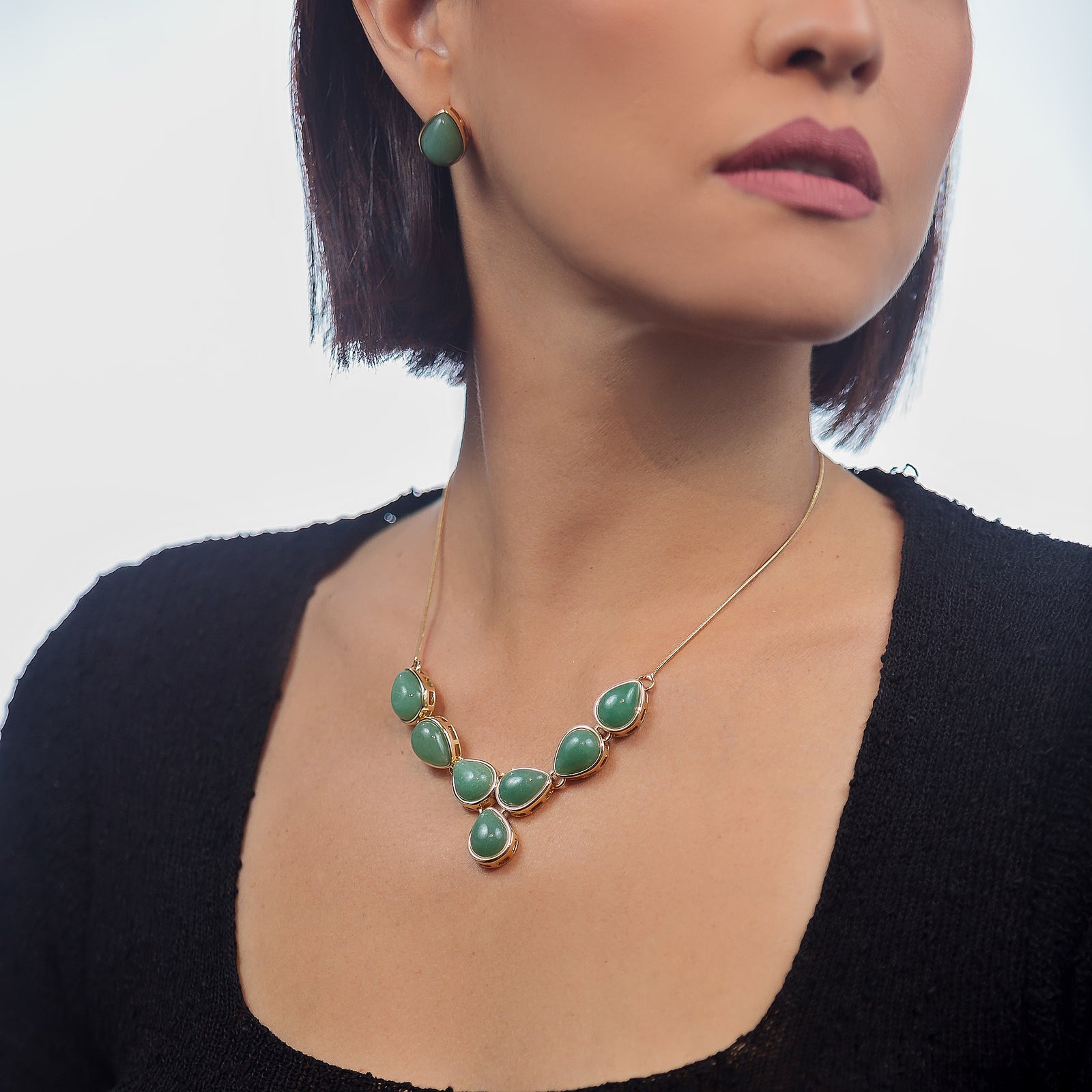 Statement Necklace in Green Quartz Natural Gemstone | Gold Plated