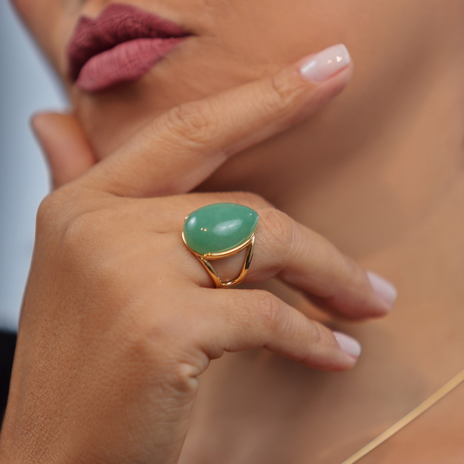Cocktail Ring in Green Quartz Natural Gemstone | Gold Plated