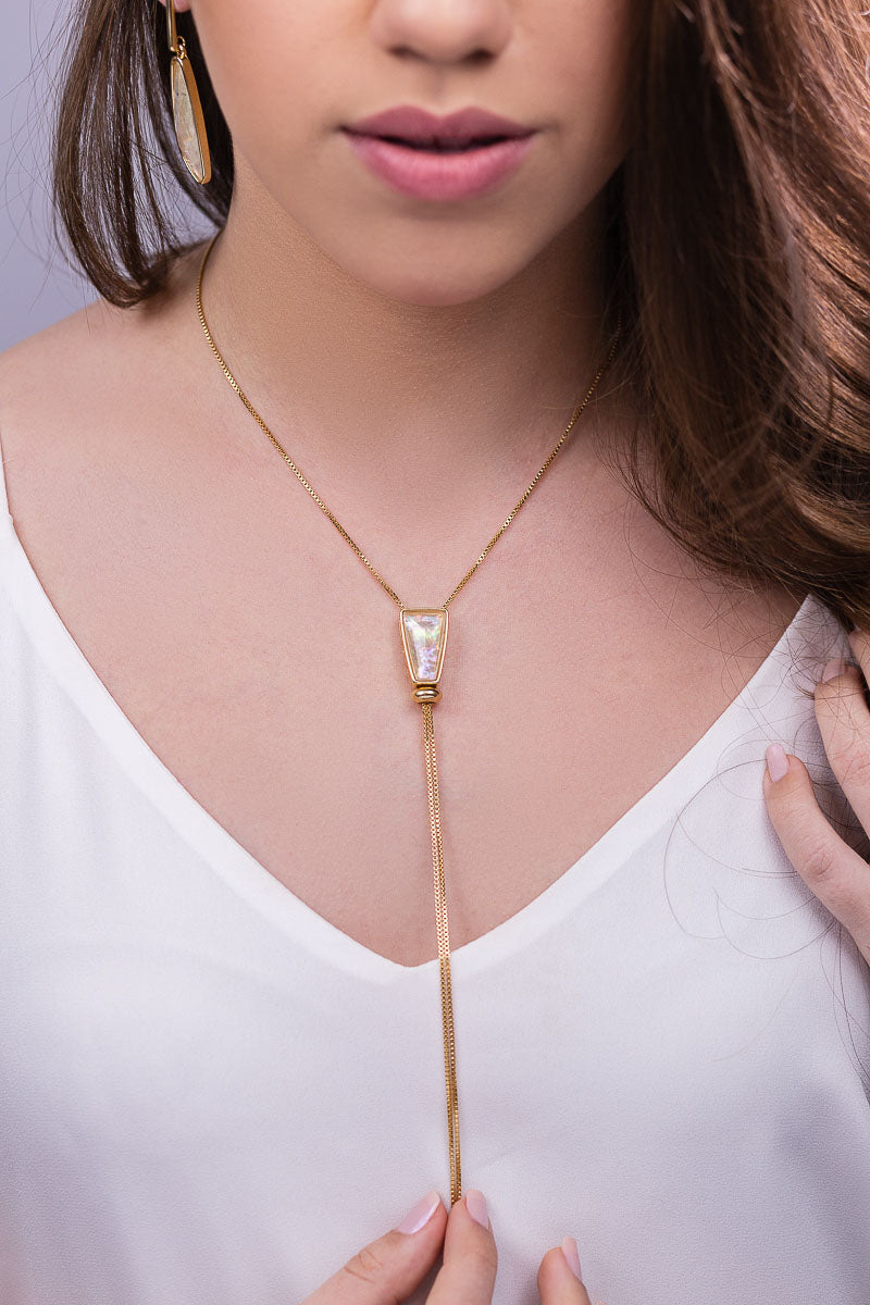 Adjustable Lariat Slider Necklace in Nautilus Shell | Gold Plated