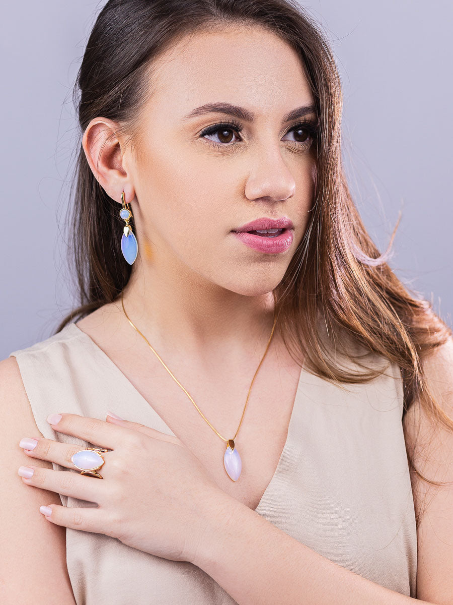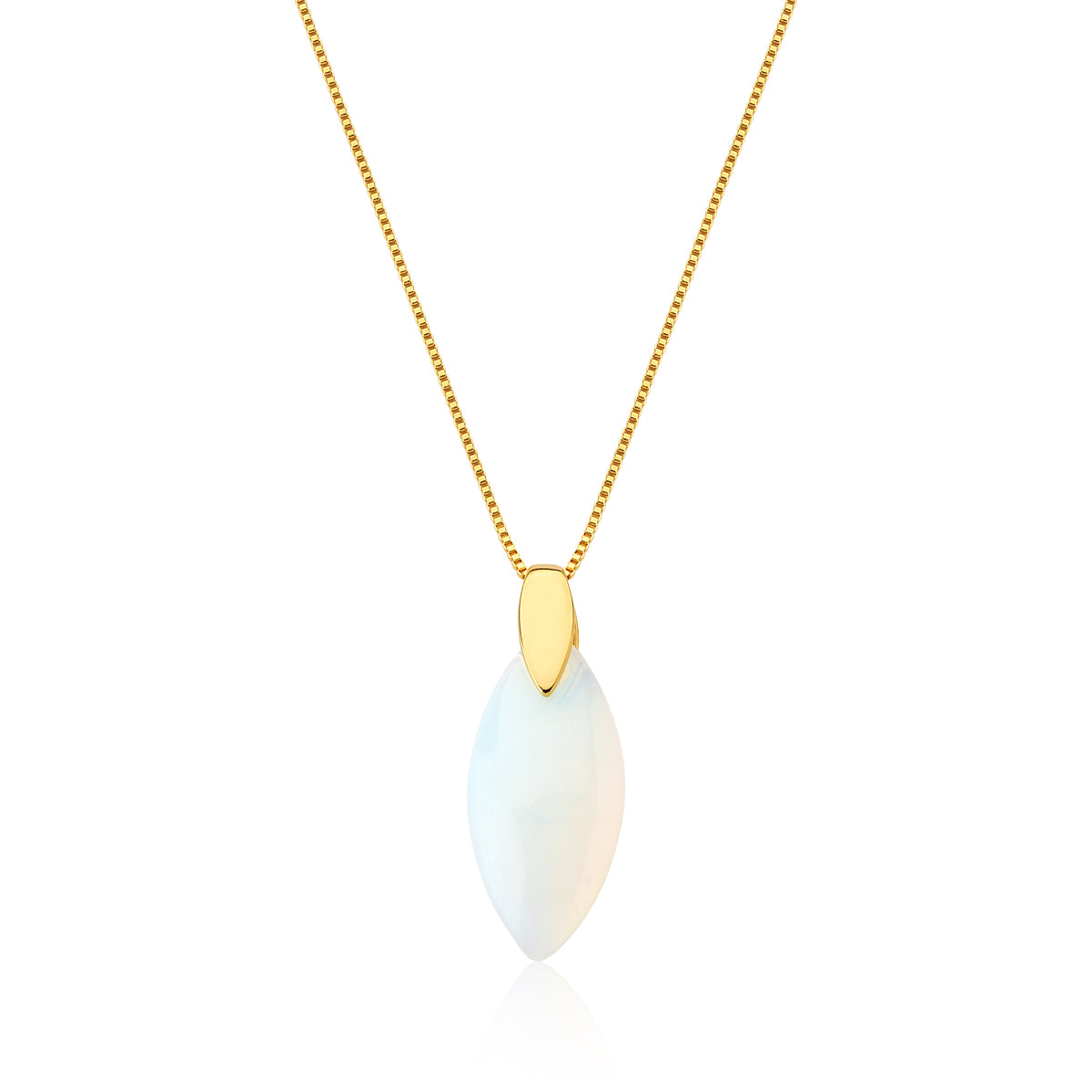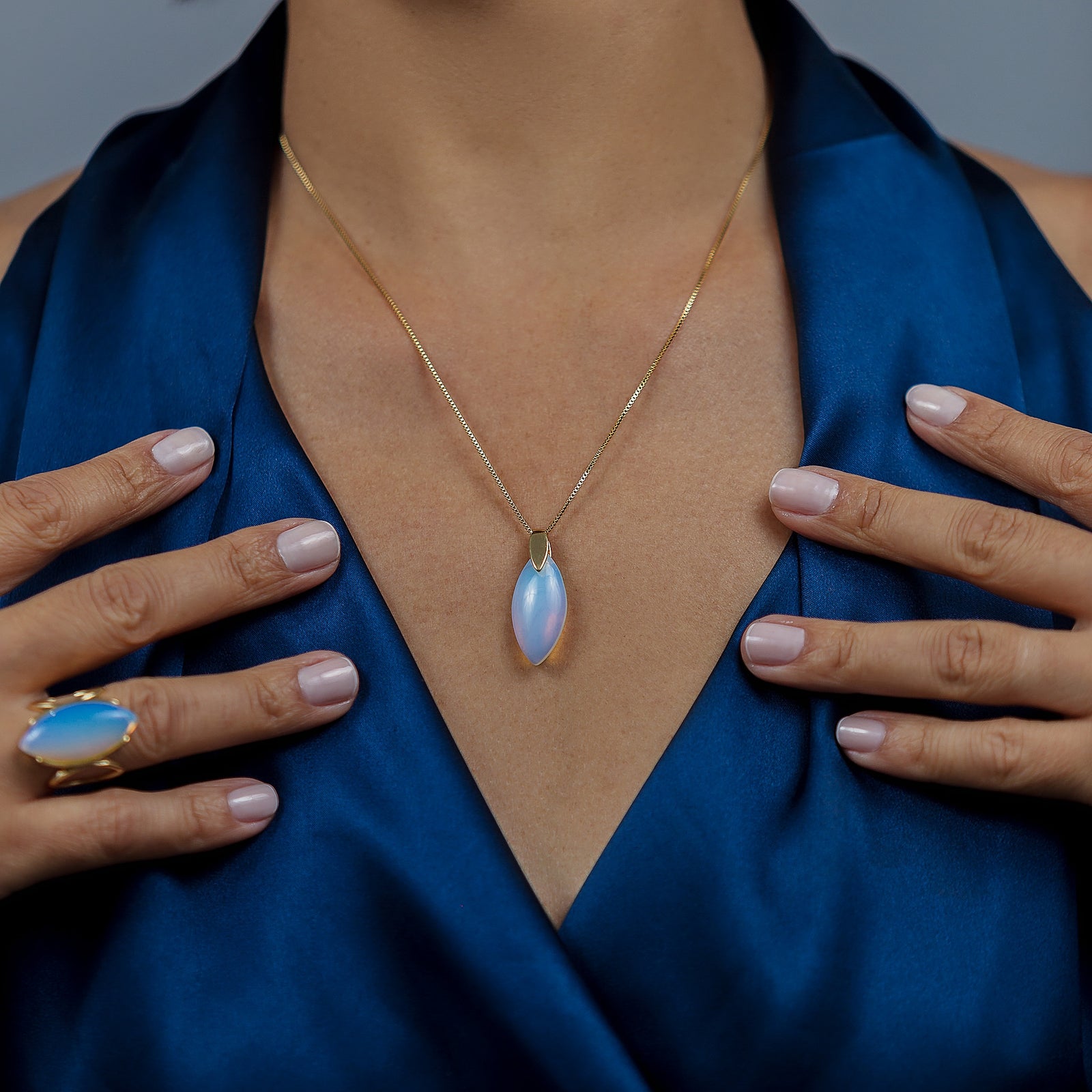 Marquise Shape Pendant Necklace in Opaline Natural Gemstone | Gold Plated