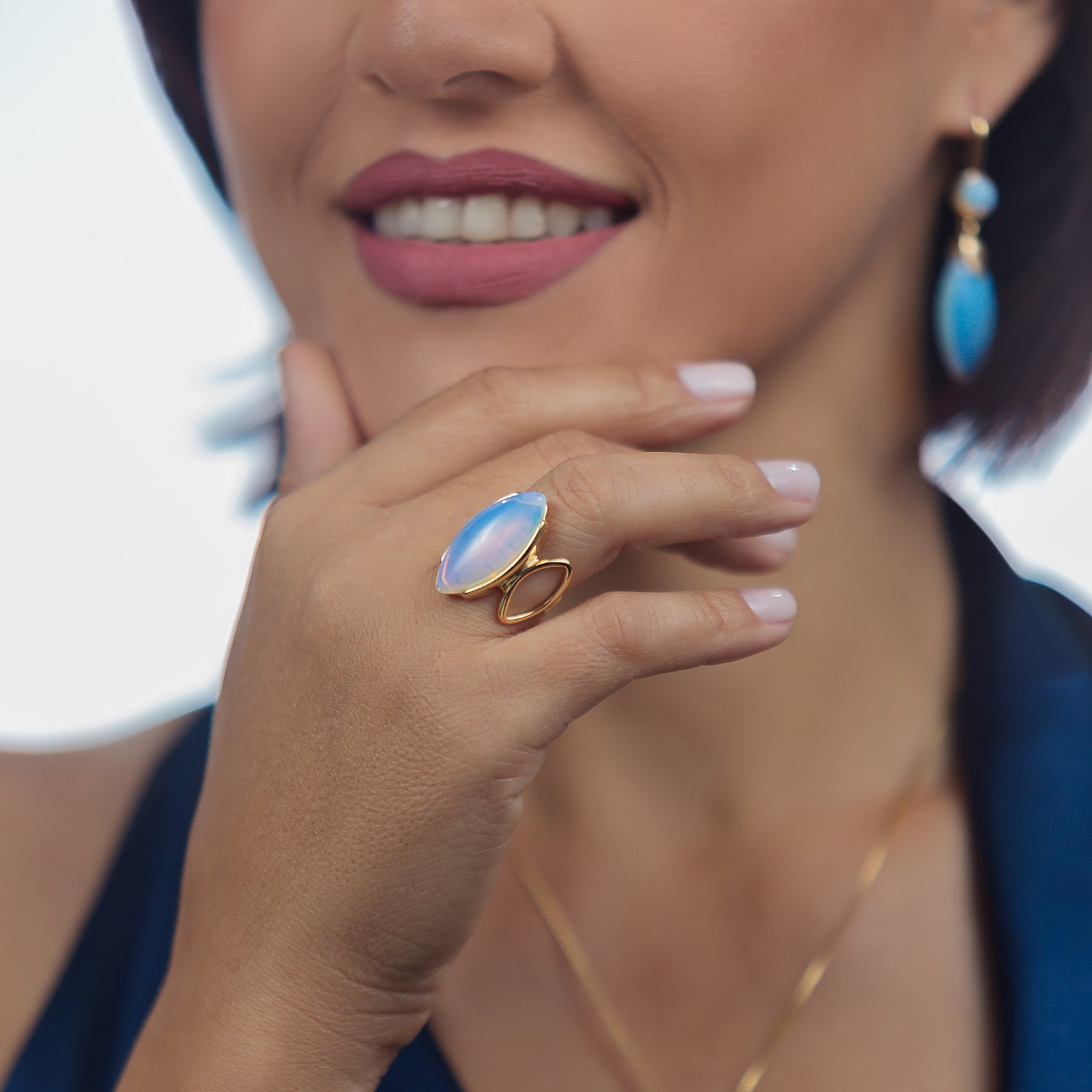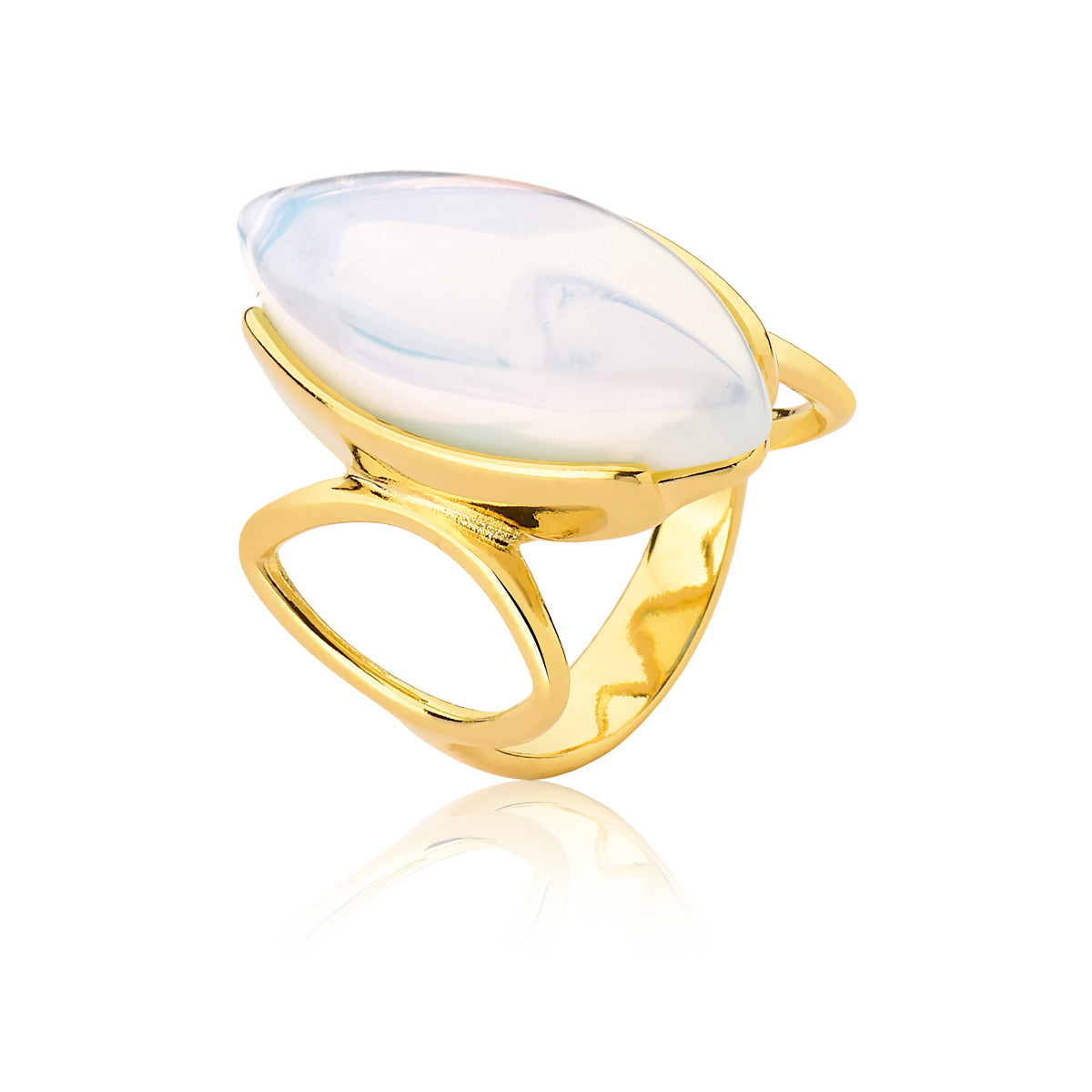 Marquise Shape Cocktail Ring Opaline Natural Gemstone | Gold Plated