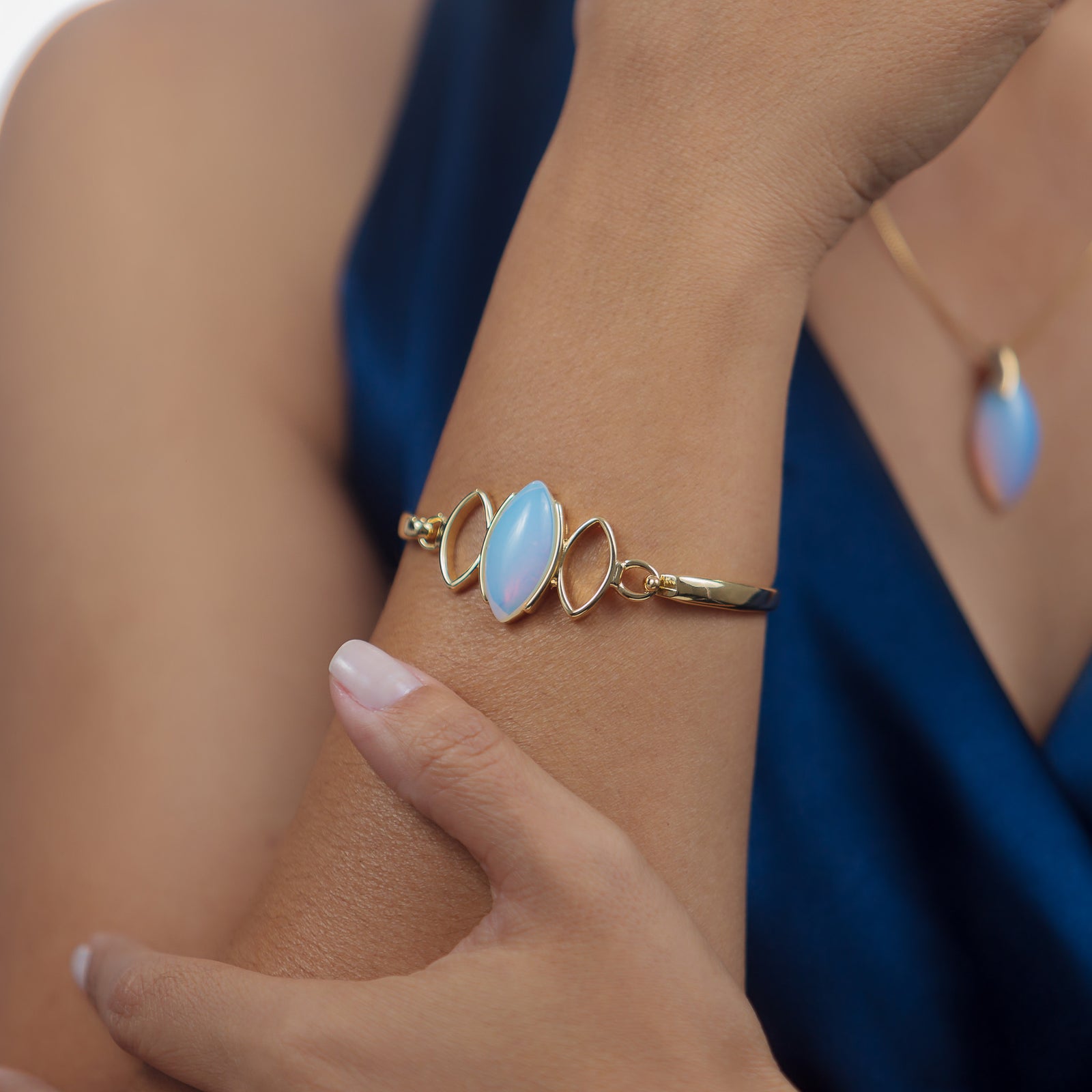 Marquise Shape Bangle Bracelet Opaline Natural Gemstone | Gold Plated