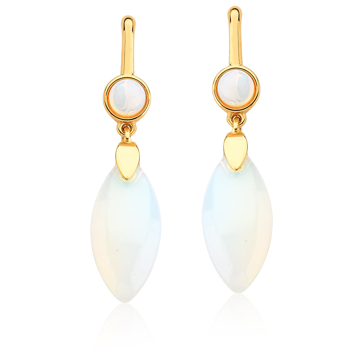 Marquise Shape Drop Earrings in Opaline Natural Gemstone | Gold Plated