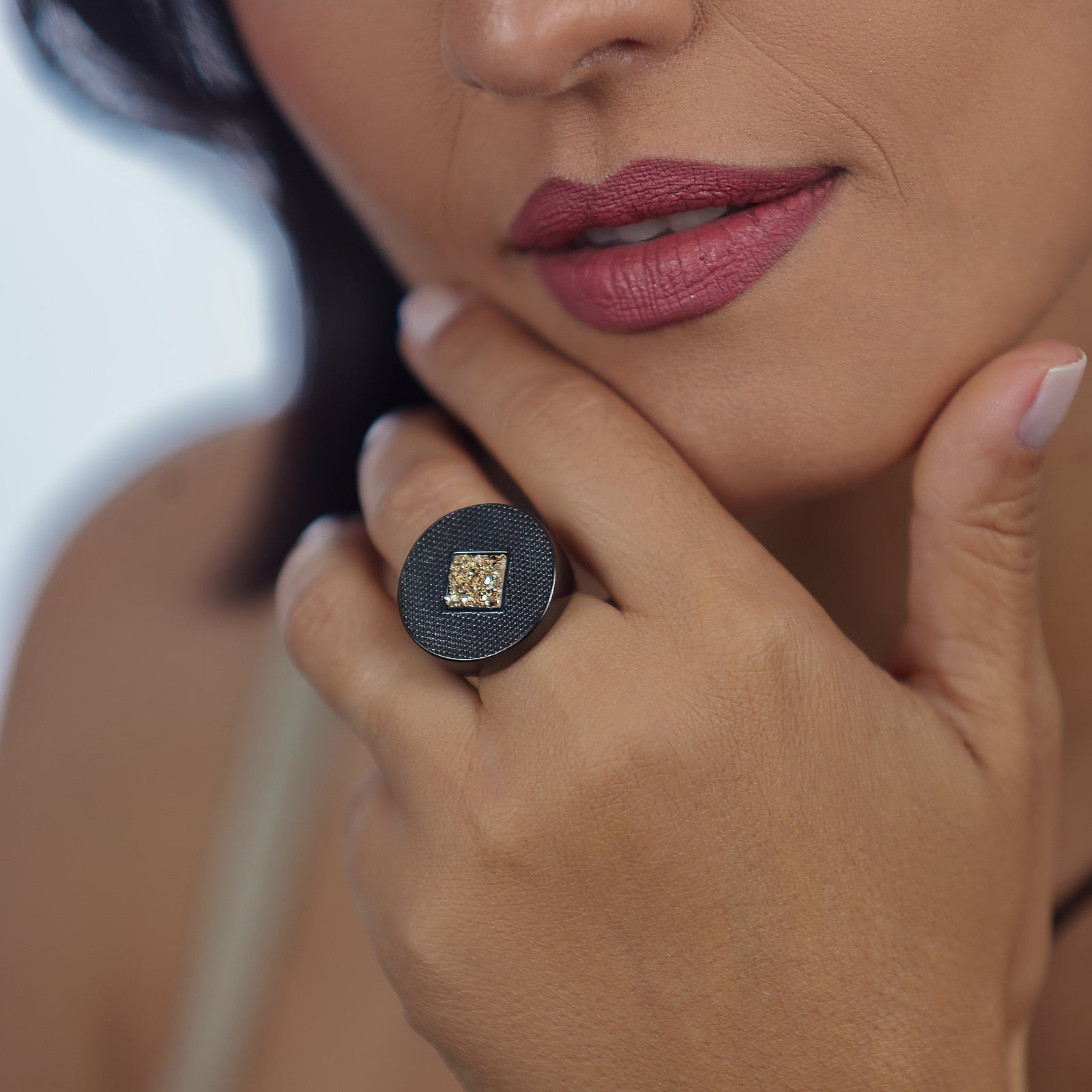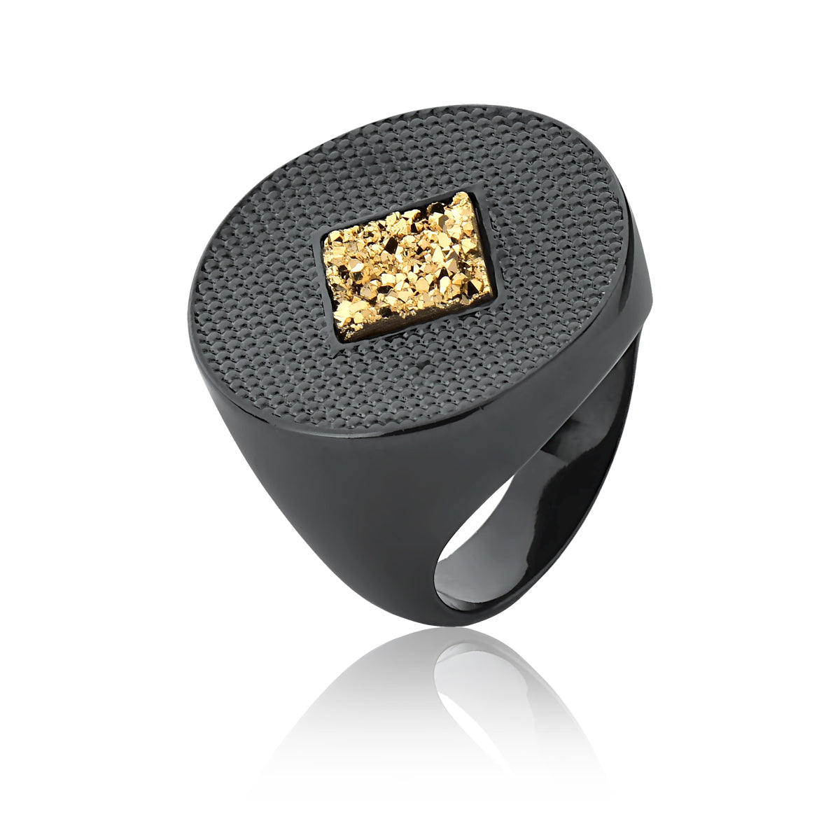 Cocktail Ring in Gold Druzy Natural Gemstone | Black Metal