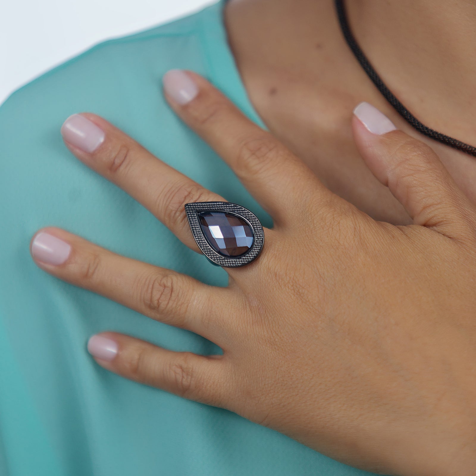 Cocktail Ring in Blue Smoke Quartz Natural Gemstone | Black Metal