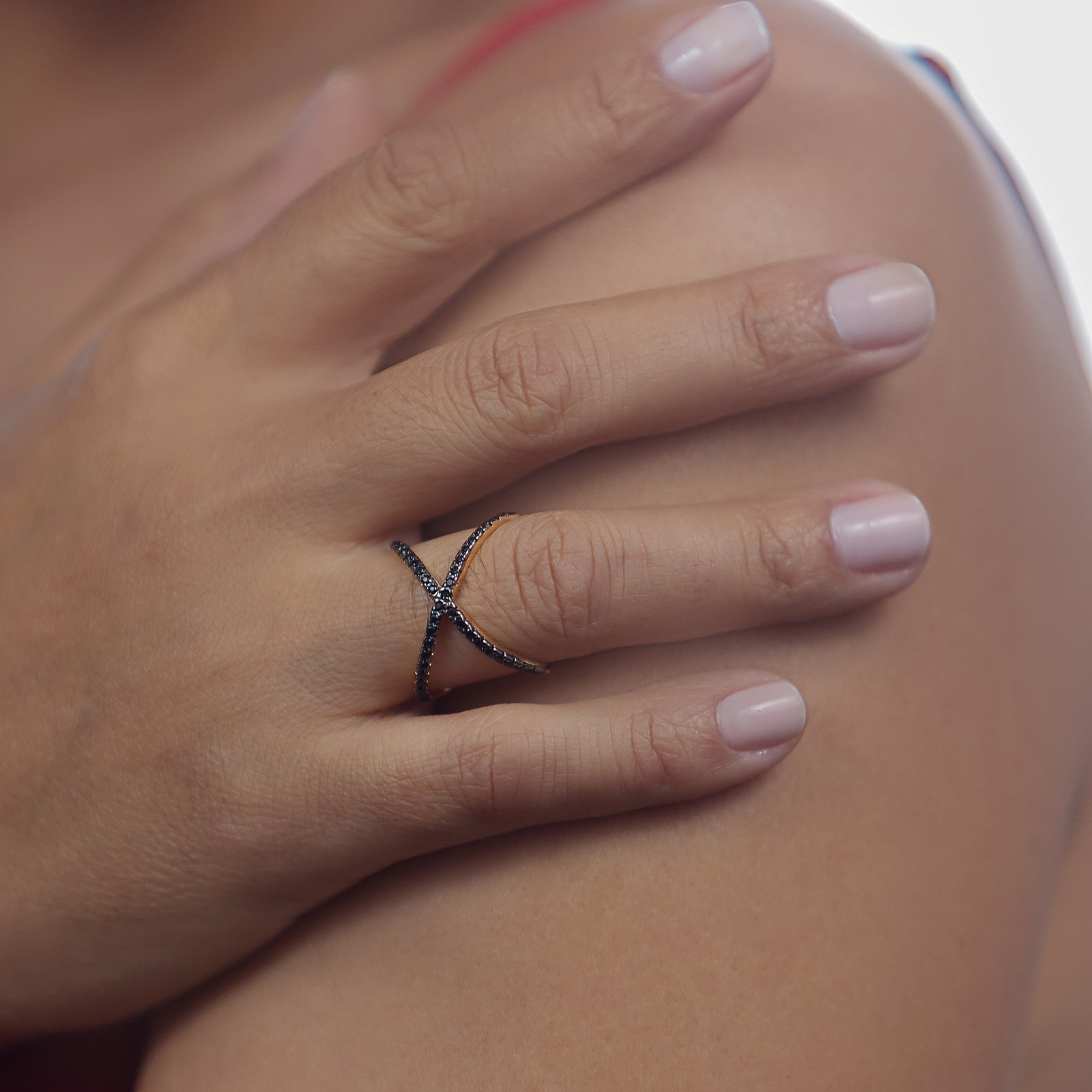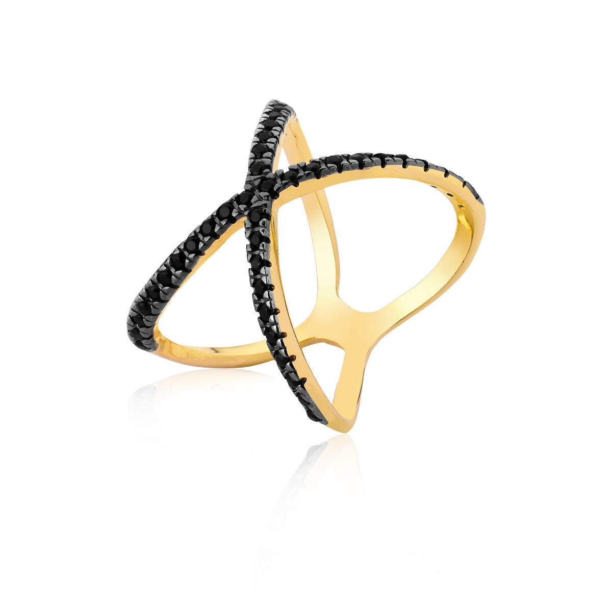 Criss Cross Ring Black CZ Pave | 18k Gold Vermeil
