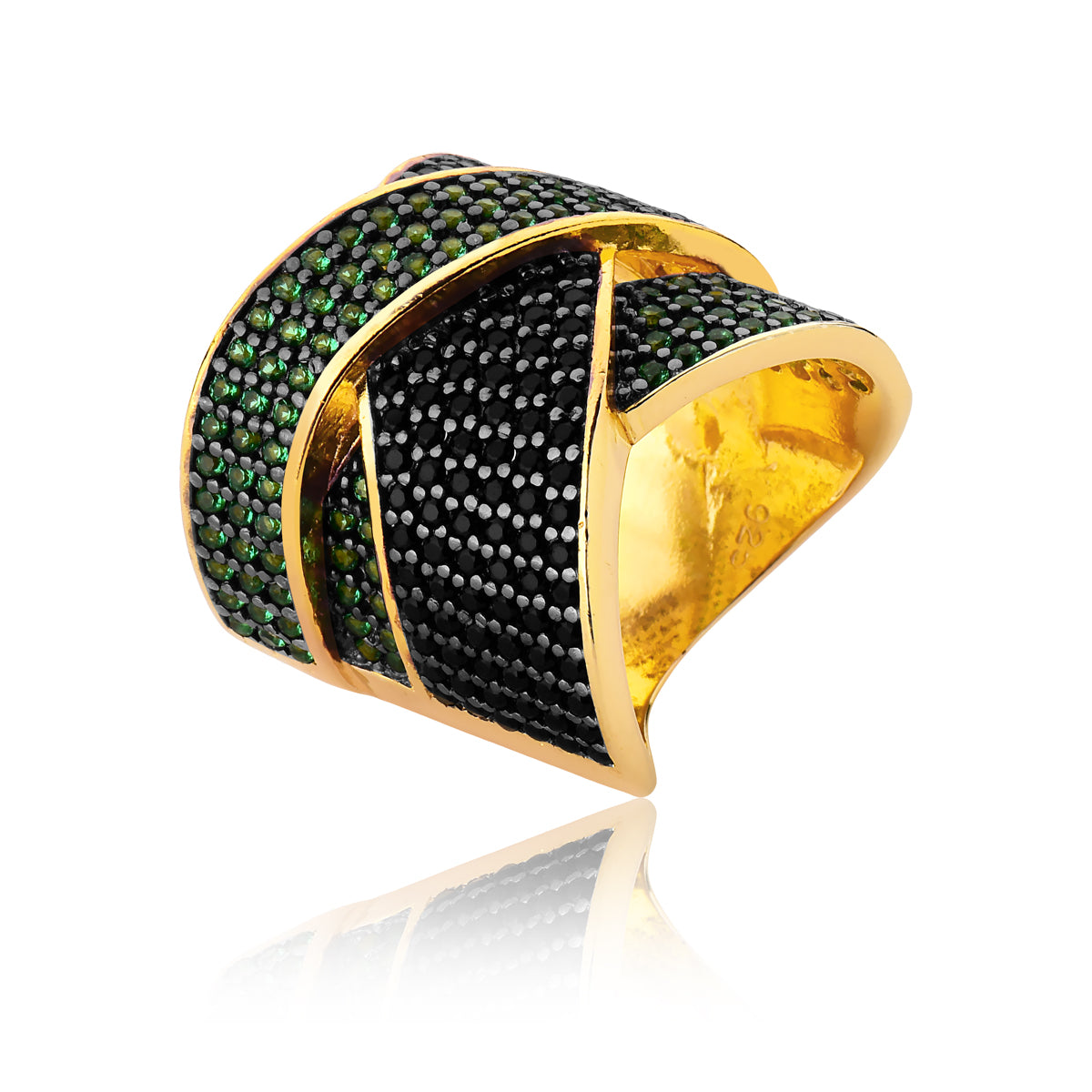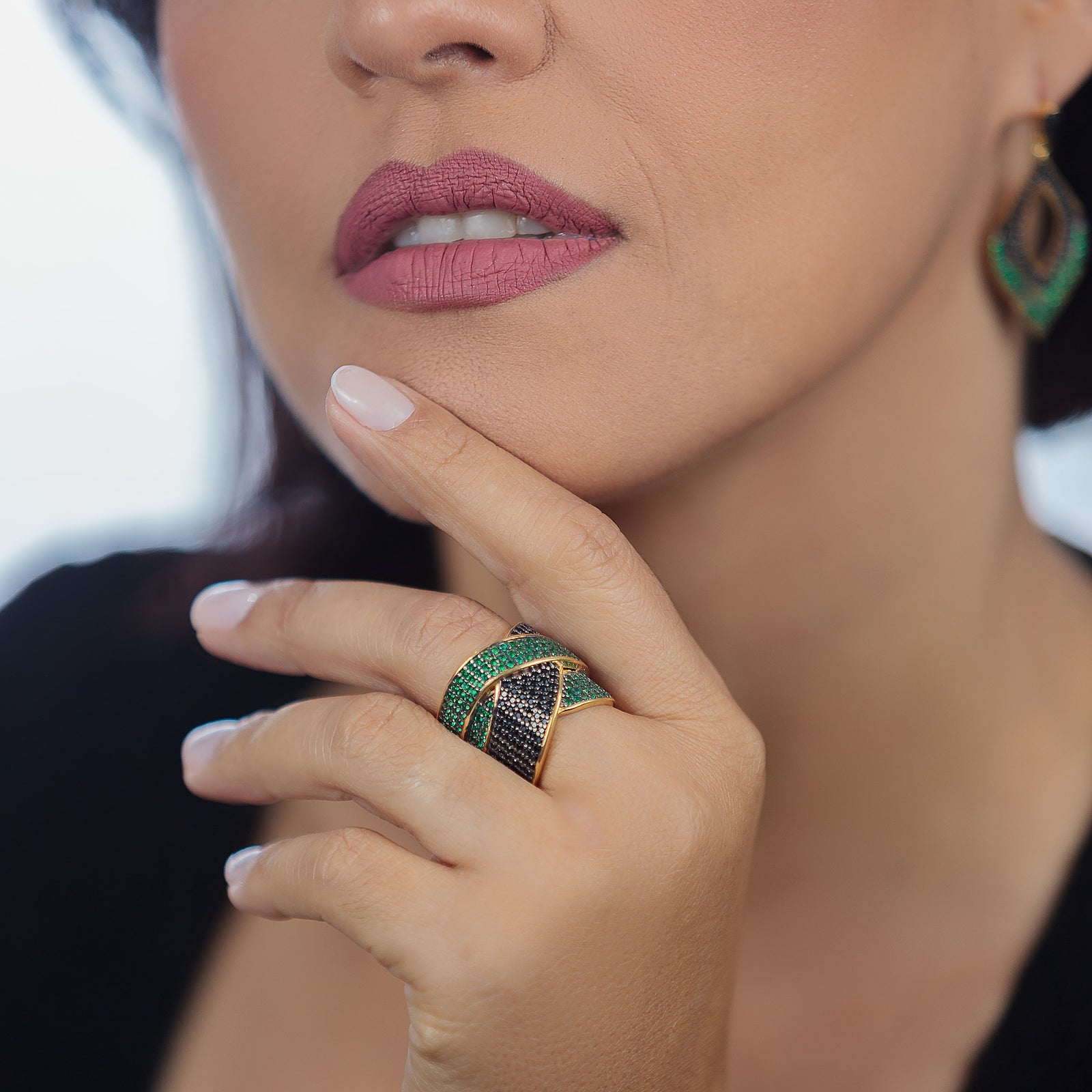Cocktail Ring Green and Black CZ Pave | 18k Gold Vermeil