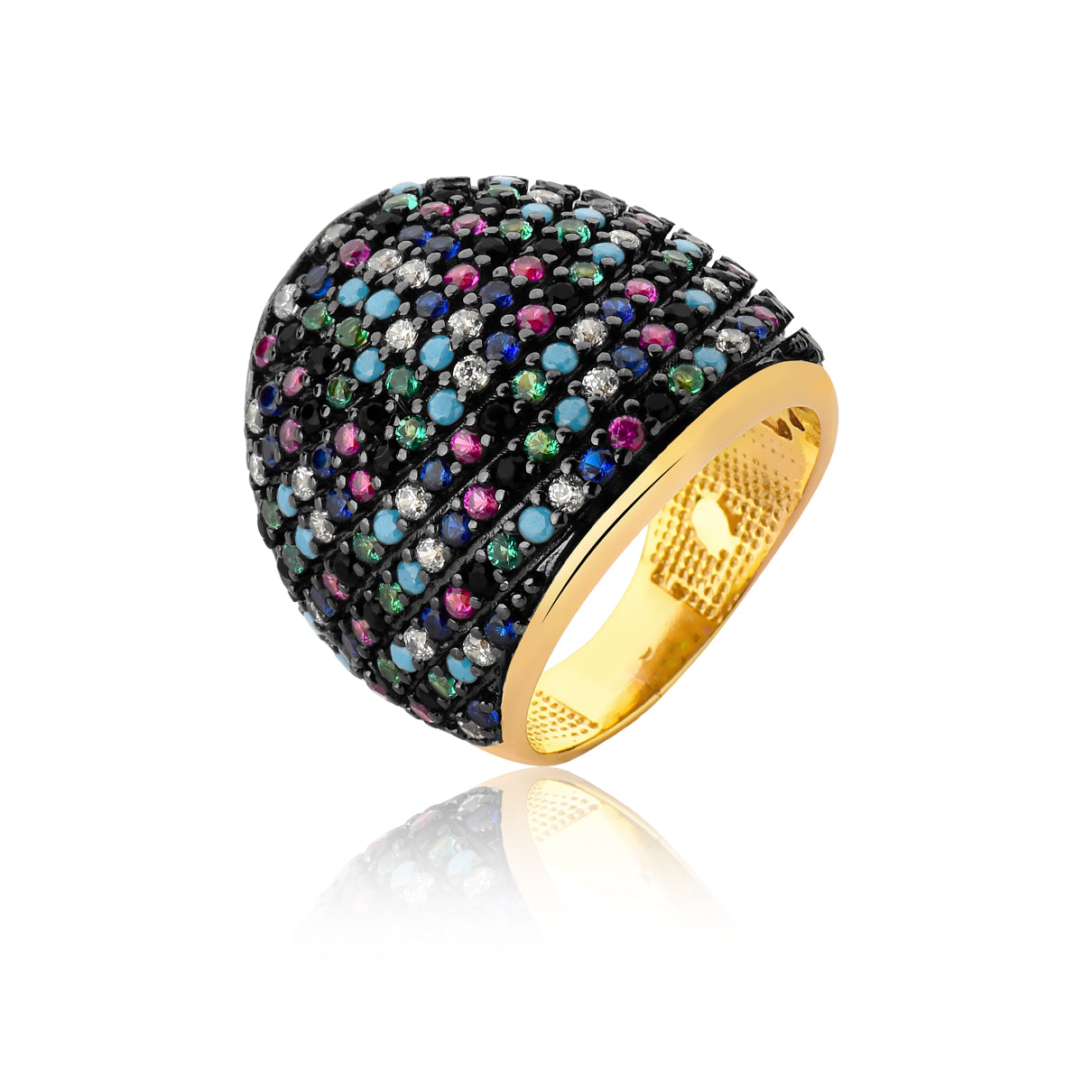 Cocktail Ring Multi-Color CZ Pave | 18k Gold Vermeil
