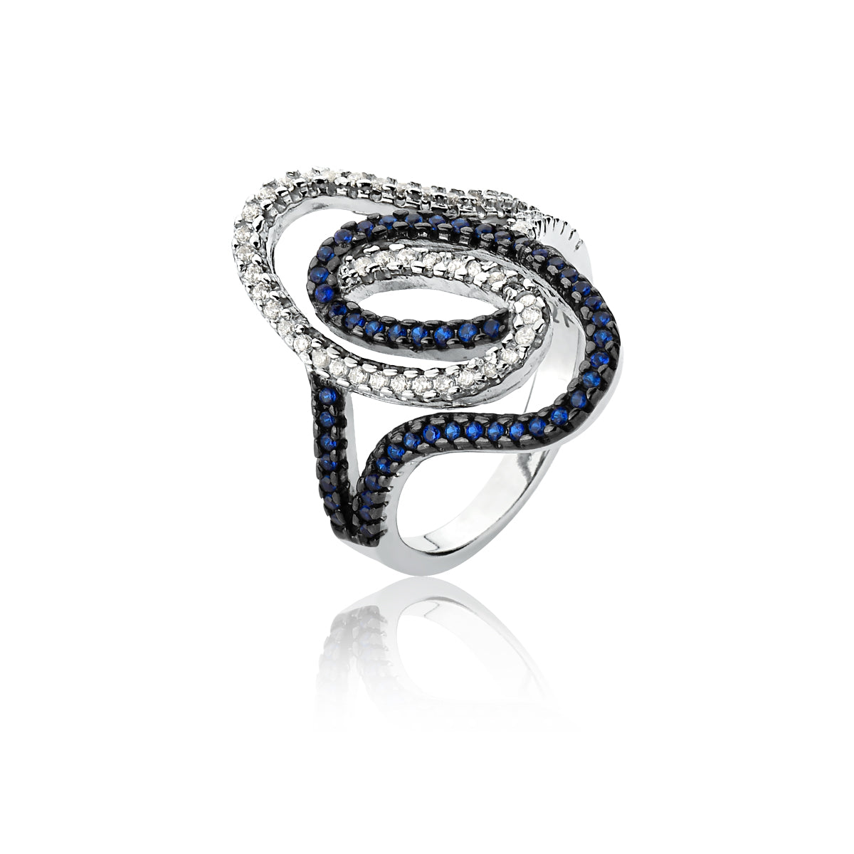 Cocktail Ring Clear and Blue CZ Pave | Rhodium over Silver