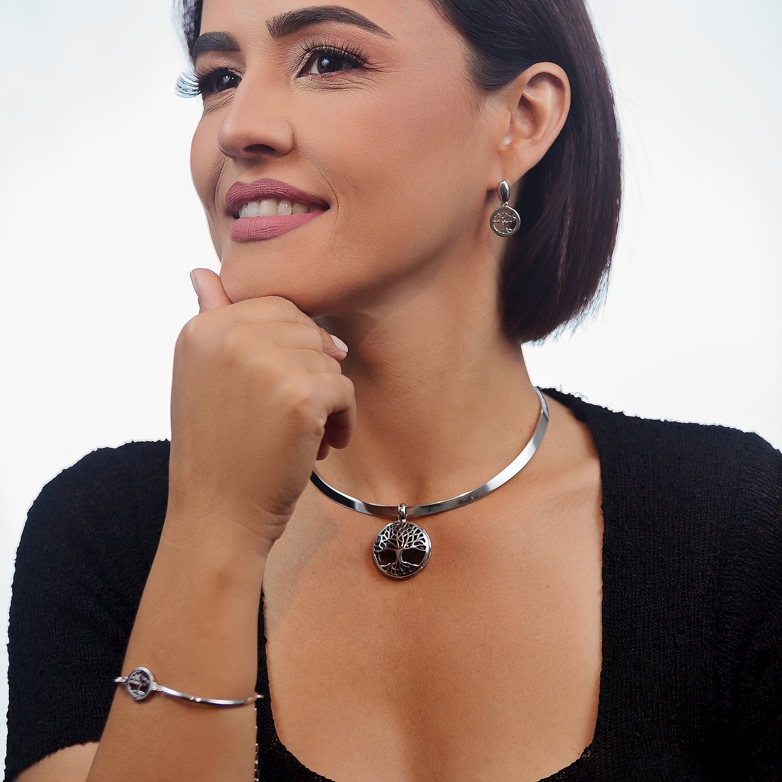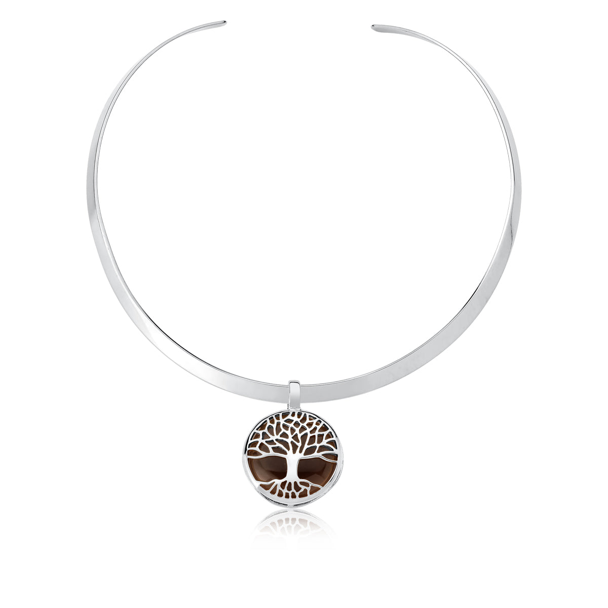 Tree of Life Choker Necklace in Smoke Obsidian Natural Gemstone | Rhodium Plated