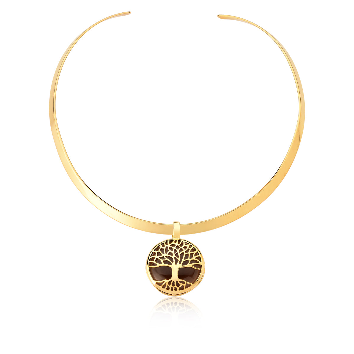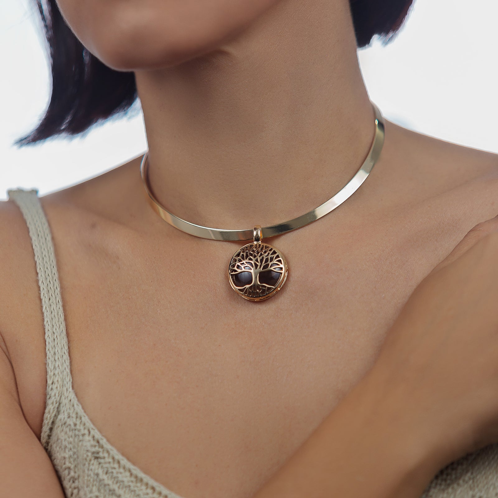 Tree of Life Choker Necklace in Smoke Obsidian Natural Gemstone | Gold Plated