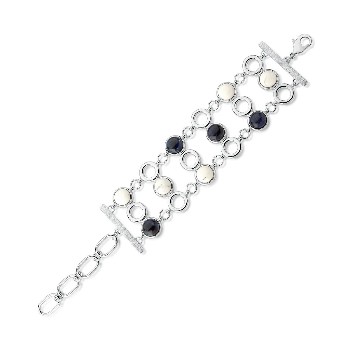 Link Bracelet in Sodalite & White Howlite Natural Gemstone | Rhodium Plated