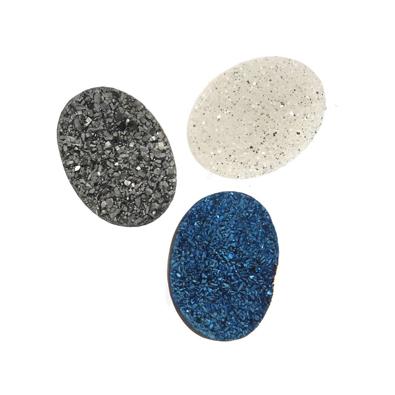 A little bit of history: Druses can be coated with a metal application, creating a metallic effect on the surface of the gem, which further intensifies its shine. A high-tech enhancement, using a vacuum chamber, the metals bind to the mineral producing vivid and metallic colors, a process called metallization.